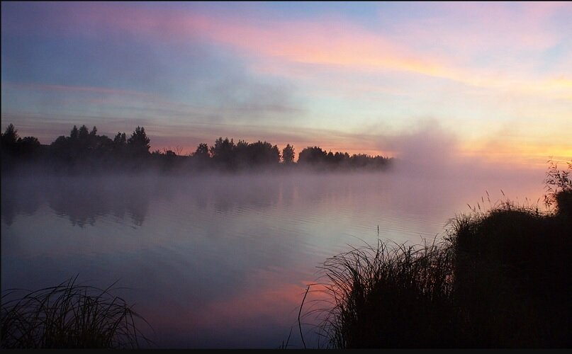 над рекою густой пеленой,