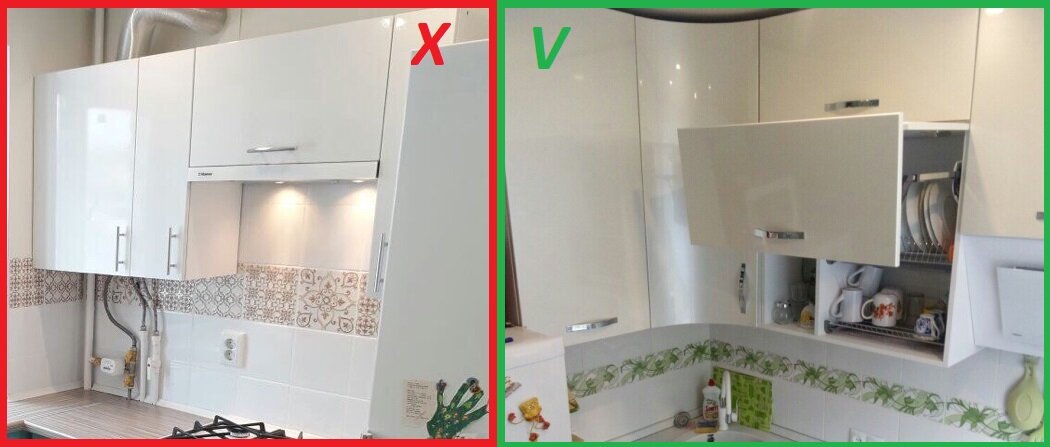 1. Высокие верхние шкафы Если у вас маленькая кухня, то покупайте высокие шкафы.