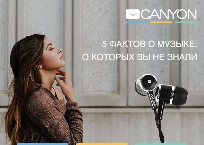 3. слушая музыку во время занятий спортом, ты тренируешься эффективнее; 4. любимая песня, как правило, ассоциируется с самым эмоциональным моментом в жизни; 5. наушники Canyon CNE-CEP01B https://vk.cc/7ejFAx позволят насладиться любимой музыкой в великолепном качестве.
