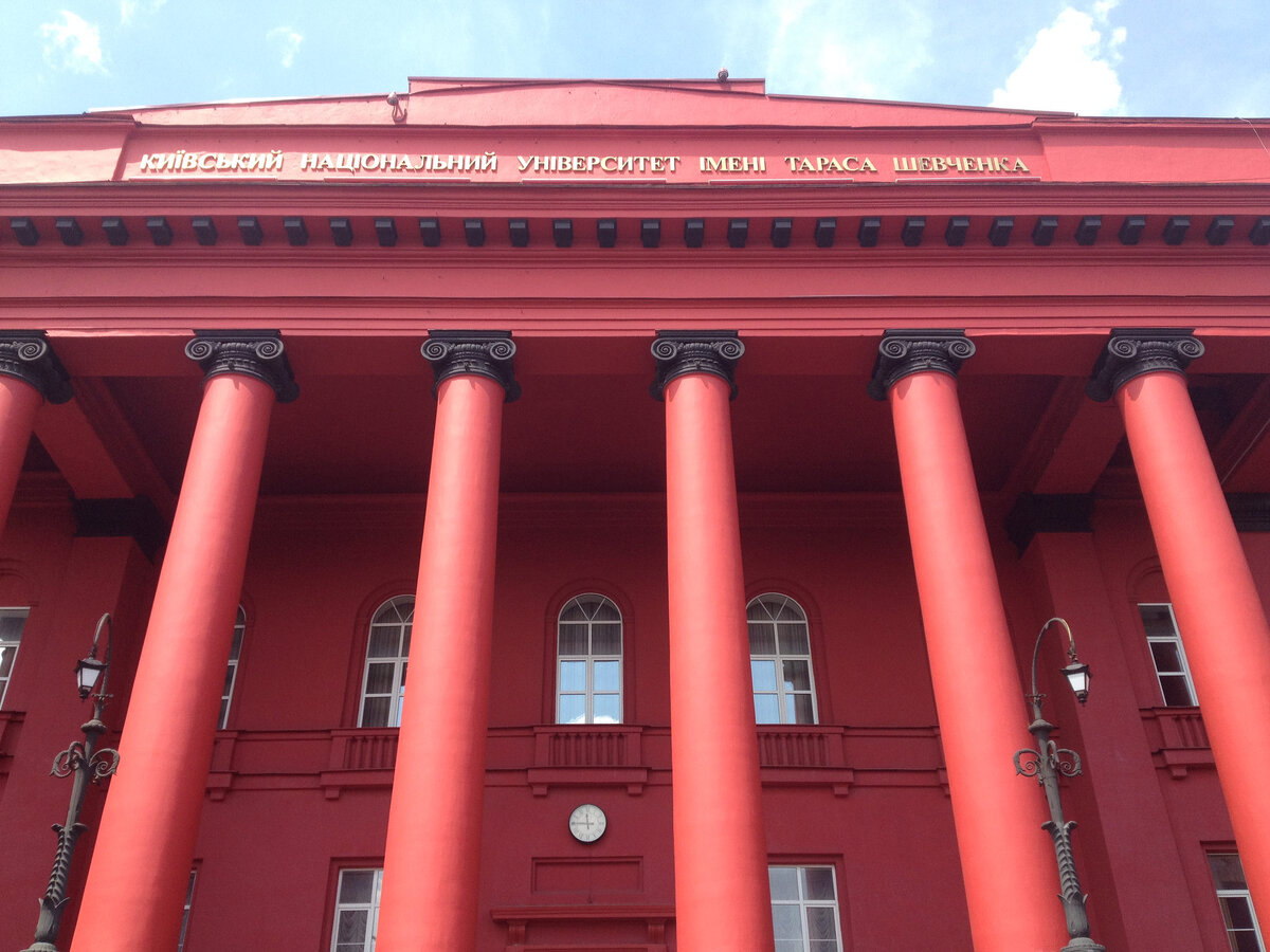 Историки уверяют, что архитектура красного корпуса Киевского университета имени Тараса Шевченко была рассчитана на то, что его облик будет привлекать внимание не только прогуливающихся по прилегающим к зданию улицам, но и с отдалённых Печерских склонов. Поэтому в облике здания практически нет мелких деталей, только крупные элементы. Здание было построено в 1843 году. Главный восточный фасад сегодня выходит на центральную улицу города - Владимирскую. Но в середине 19 века, когда реализовывался проект, архитектор Викентий Беретти ещё не знал, что-где будет. Вокруг были только поля. Возможно поэтому он выбрал квадратную планировку объекта и западный фасад мало чем уступал восточному. Сегодня, правда, он почти скрыт от взгляда киевлян, поскольку выходит в сторону Ботанического сада. Первоначальный цвет корпуса был белый. Уже в ходе строительства сам архитектор выступил с инициативой изменить цвет и сделать его более ярким. Однако пожелания касались только стен, которые зодчий предлагал с