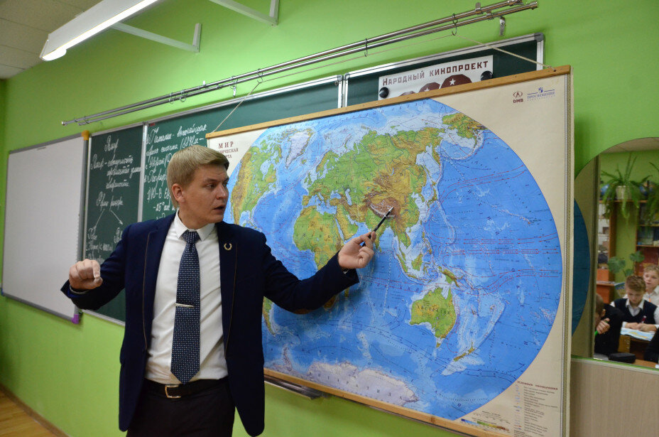 - Когда сегодня пришел домой, увидел в зеркале, что весь костюм и лицо в мелу. И неудивительно: объяснял семиклассникам про движение земной коры, извержение вулканов, глубоководные желоба. Ну и движуха у доски началась! Надо постараться, чтобы у ребят под коркой все так же зашевелилось: базальт, гранит, осадочные породы. Детям требуется структурировать и удержать в голове массу специфической информации. Начинаю с простого и запоминающегося – с камня, то есть с литосферы: вспоминаем, что «литос» в переводе с греческого «камень». Вот с образцов и начинаем. Различные породы образуют земную кору, что в основании материков и океанов, а это уже интересней, пора подключать обычную карту и интерактивную доску. Процесс пошел. Главное, чтобы в классе не было слишком тихо. Тишина на уроке для меня тревожный сигнал, если, конечно, не идет контрольная. Безучастность и равнодушие учеников всегда повод для переживания. К счастью, такое со мной уже практически не случается: за годы работы в школе понял, как по-настоящему заинтересовать ребят информацией из учебного плана. Вовлеченность, любовь к предмету, а следовательно, и хорошая успеваемость учеников – главный показатель успеха преподавателя.
