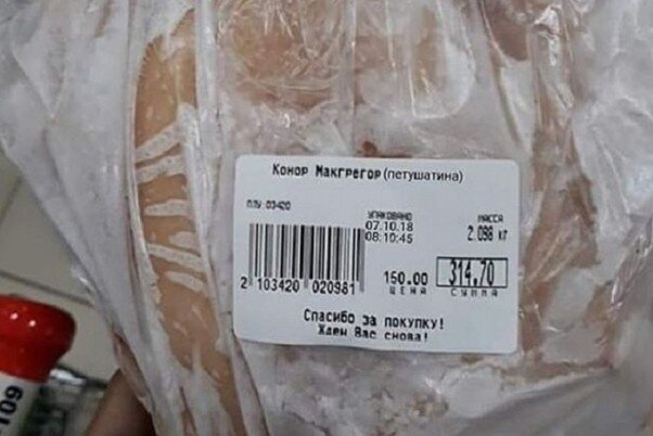 Недавняя победа Хабиба Нурмагомедова над ирландским спортсменом вышла далеко за рамки MMA-сообщества . В одном из магазинов города Артем Приморья появилось охлажденное мясо птицы, которое называется «Конор Макгрегор».