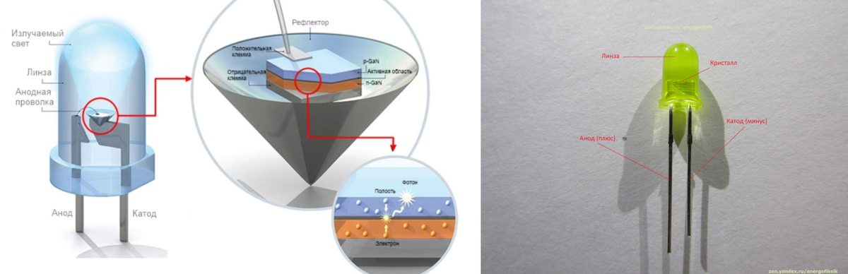 Несмотря на все разнообразие светодиодов выполненных по разным технологиям принцип работы у них один и тот же и заключен он в следующем: