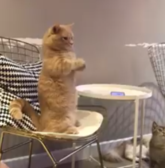 Усатая предпочла отойти от общей толпы и оккупировать более выгодную позицию для приёма пищи. Для этого был использован стул, который возвысил подопечную над остальными пушистыми соперниками. С этого заметного места кошка начала активно привлекать внимание своей владелицы, которая сразу оценила такой креативный подход животного. Посмотреть