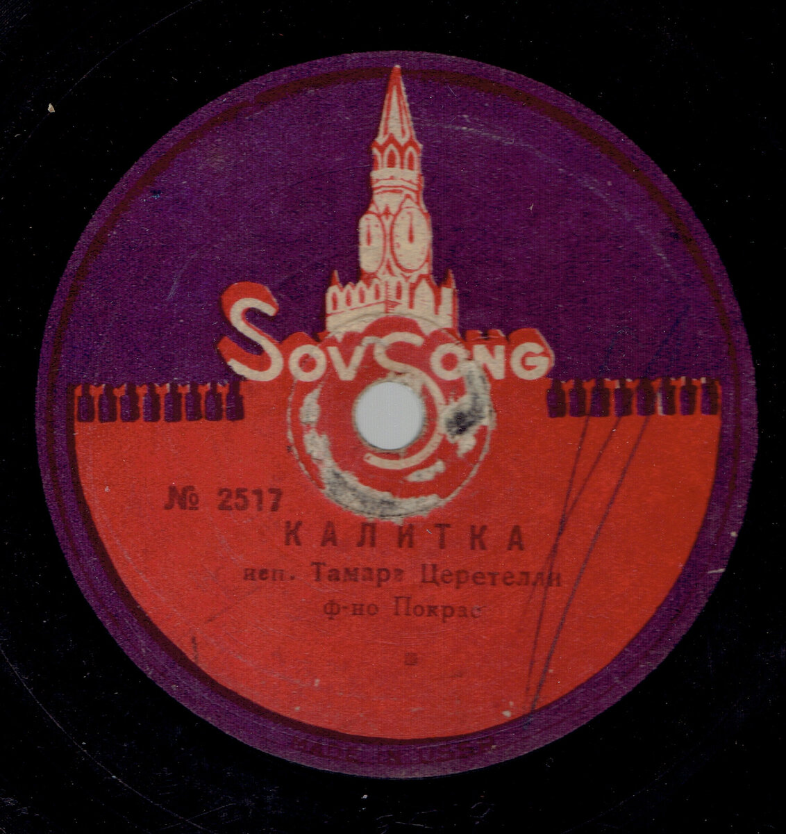 Советская граммофонная пластинка, выпущенная в 1937 году Ногинским заводом грампластинок Наркоммаша СССР.