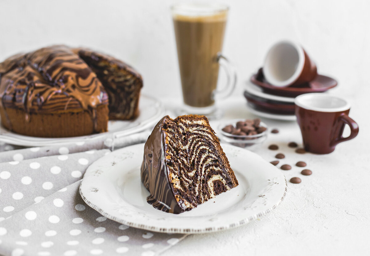 - Смажьте форму для выпекания очень тонким слоем своего растительного масла. Используйте две ложки. Выкладывайте поочередно ложку то одного, то другого теста в центр формы. Чем чаще и ровнее будут слои, тем более мраморным выйдет торт. Отправьте форму в духовку. Выпекайте 45-50 мин. при 170 гр. Готовность проверьте зубочисткой. Если выходит сухая, значит корж готов. Учитывайте особенности своей духовки. Вам может понадобиться чуть больше или чуть меньше времени. Форму с готовым коржом заверните в пакет, плотно завяжите, оставьте на 3-4 часа до полного остывания. За это время торт станет максимально влажным и насыщенным.