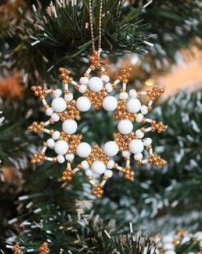 Как же красиво смотрятся на зеленой елке игрушки, сделанные своими руками из бусин и бисера: ангелочки, колокольчики, звездочки, снежинки, фигурки животных и т.д. Смотрите сами... Многие из них напоминают те елочные игрушки, которые были у наших бабушек и дедушек. Помните? Сделать, например, такие звездочки очень просто, главное, знать как. Ответ смотрите в этом пошаговом видео Или вот такие тоже легко сплести А сколько разных снежинок из бусин и бисера! Они похожие, и не похожие, простые и сложные, очень ажурные и милые А ведь сейчас такое разнообразие бусин, бисера, стекляруса в магазинах рукоделия, что при желании можно запросто сделать такую красоту своими руками. Да не только на свою елочку. Такие изделия станут желанным подарком для Ваших друзей. А некоторых они возможно, вернут на мгновение в детство... А чтобы было проще, начните с такой снежинки и сделайте ее следуя этому мастер-классу Много других идей и мастер-классов по поделкам из бусин, бисера, стекляруса Вы найдете на