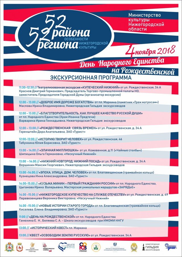 4 ноября - в День народного Единства нижегородцев и гостей города приглашают на экскурсии и квесты по Рождественской стороне. Экскурсии проводятся на благотворительное основе (без оплаты) для ее участников.
