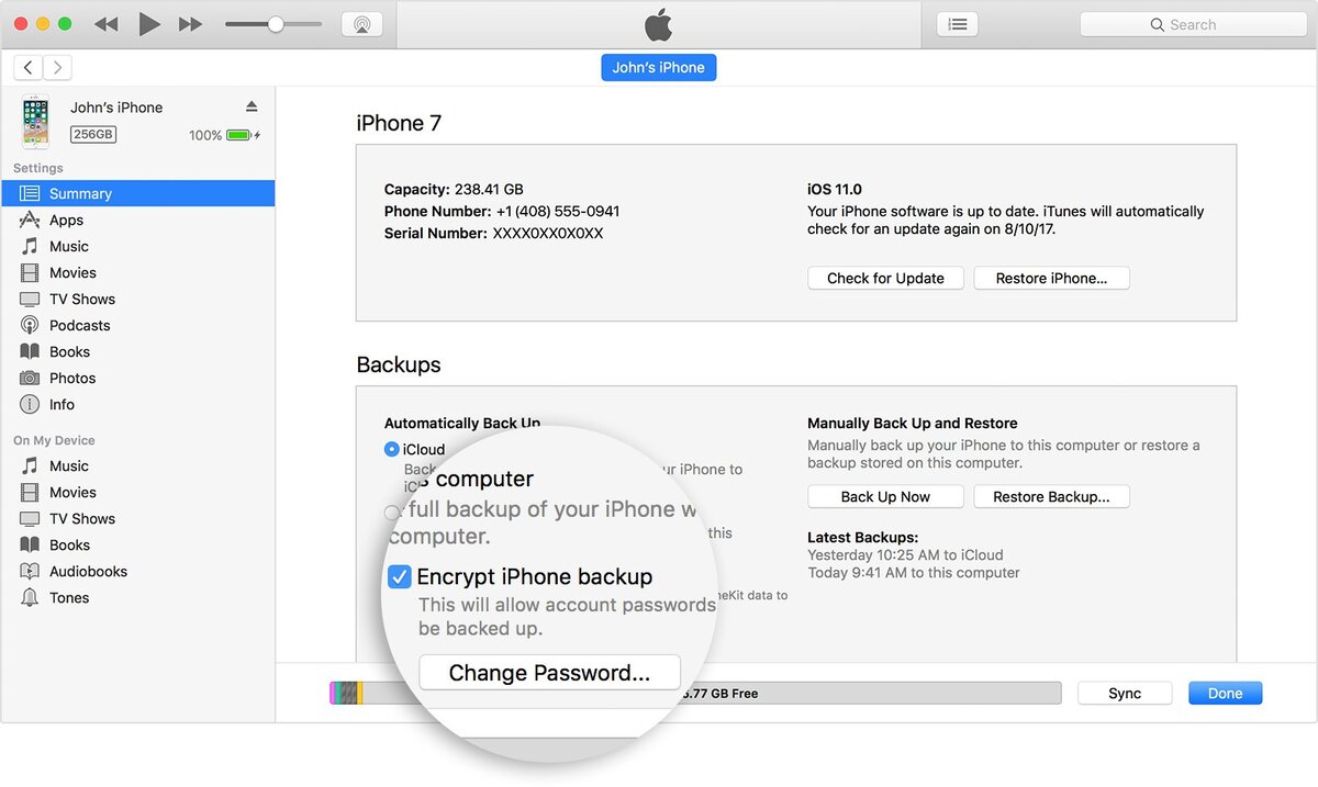 - Проверить, установлен ли пароль на резервную копию (в iTunes либо Elcomsoft iOS Forensic Toolkit) по инструкции
