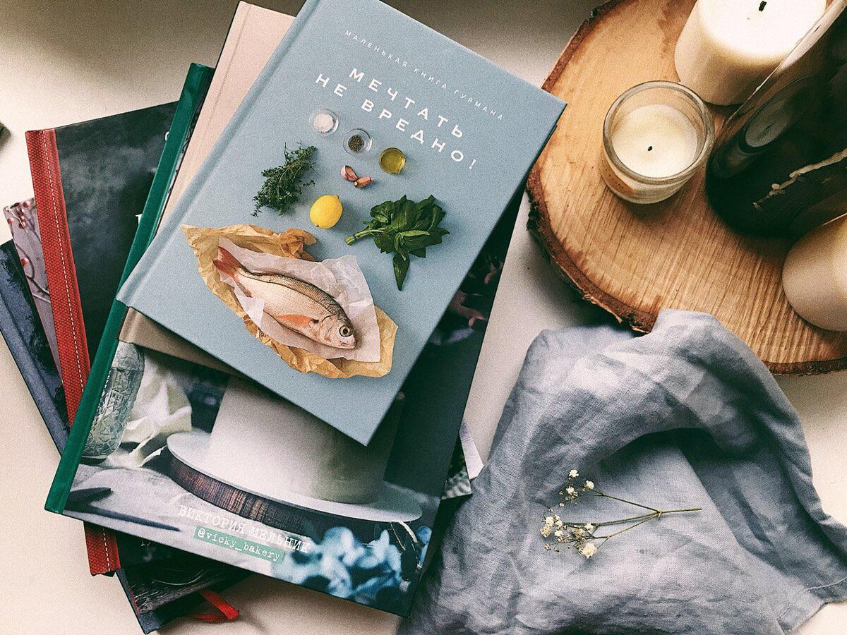 Этих малюток я впервые увидела в Республике на Невском, но естественно не купила, потому что 650 рублей за книгу – это несерьезно. Я точно знала, что онлайн будет дешевле. Когда я открыла "Мечту гурмана", первая моя мысль была: "Если бы я писала кулинарную книгу, я бы сделала ее именно такой", потому что по оформлению это попадание в десятку.