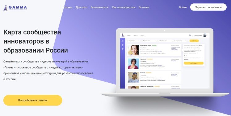 Запущен онлайн-навигатор по сообществу инноваторов в образовании России «Гамма» . Участник Vmeste1000 Алексей Маслов, сотрудник ЦСИО «СОЛь», стал одним из разработчиков онлайн-навигатора по сообществу инноваторов в образовании «Гамма». Приглашаем регистрироваться всех, кто связан с образовательной деятельностью! В ноябре 2018 года ЦСИО «СОЛь» запустила онлайн-навигатор по сообществу инноваторов в образовании России «Гамма». “Гамма” — это ответ на запрос лидеров удобно ориентироваться в результатах исследования “Карта лидеров инноваций в образовании” (2016) и в сообществе образованцев в целом. Это живое сообщество людей, которые активно применяют инновационные методики для развития образования в нашей стране. Онлайн-карта сообщества лидеров инноваций в образовании “Гамма” размещена по адресу https://gam-ma.ru Она будет полезна как лидерам и инноваторам, так и родителям, и учителям, а также всем интересующимся инновациями в образовании. Карта поможет найти людей, готовых к переменам; пос
