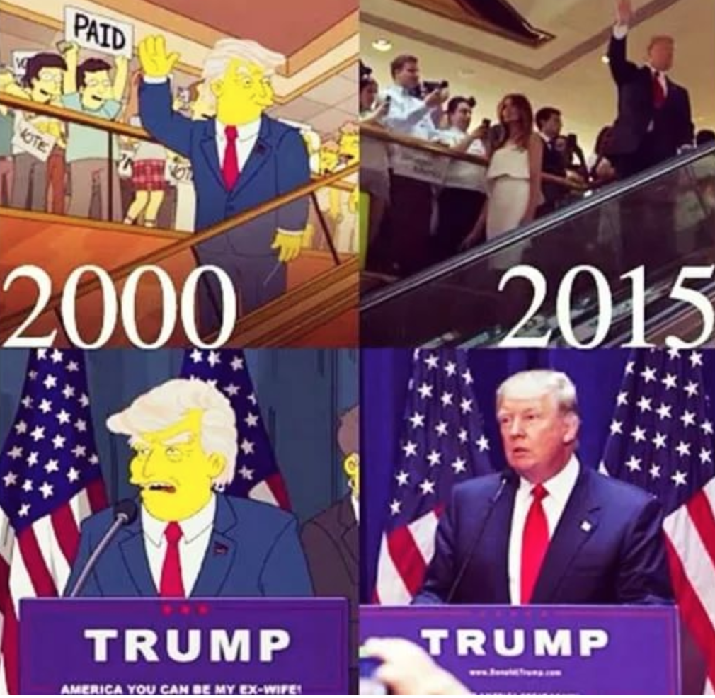 Кто бы мог подумать что сериал полюбившийся миллионам и получивший множество наград несет не только развлекательный контент Поговорим серьезно и по фактам: 1. Donald Trump - Президент США 11 сезон 17 серия «Bart to the Future». В этом эпизоде, показанном еще в 2000 году, прямо говорится, что в будущем Дональд Трамп станет президентом США. 2. Масса бозона Хиггса и Пончики ) В 1998 году был показан эпизод, в котором Гомер начинает сомневаться в пользе собственной жизни. Герой пытается создать что-то важное и ценное. В одной из сцен он пишет на доске уравнение, результатом которого является практически точная масса бозона Хиггса. Существование этой элементарной частицы было предсказано еще в 1964 году профессором Питером Хиггсом. Но подтвердить этот факт удалось лишь в 2013 году в ходе эксперимента стоимостью $13 млрд. 3. Игры в фермы и симуляторы жизни В город приезжает ярмарка и Симпсоны отправляются на неё, где видят, как дети в очках виртуальной реальности играют в симулятор фермы
