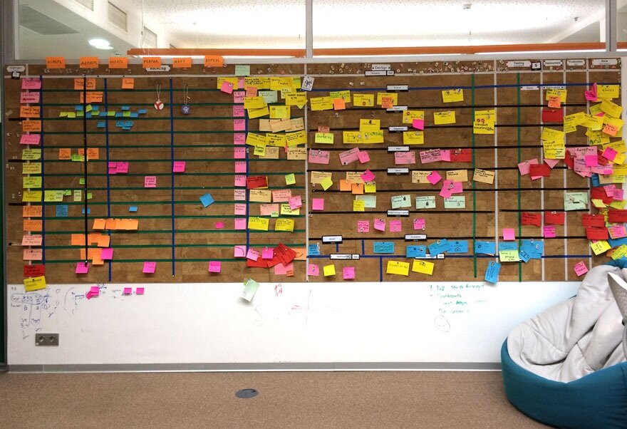 1. Визуальный контроль. Участники проекта в ходе работы над проектом используют карточки различных цветов и видов, которые сигнализируют, какой элемент конечного продукта уже разработан, спланирован, завершен и т.д. Таким образом, команда имеет наглядное представление о существующем положении дел. Визуальный контроль обеспечивает одинаковое видение проекта каждым из участников.