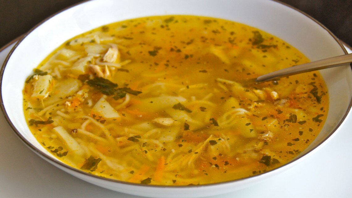 Ингредиенты (4/6 порций): 1 л (5 стаканов) крепкого куриного бульона; 1 маленькая мелко нарезанная луковица; 2 стебля лимонного сорго; 2 нарубленных листа лиметты "каффир"; 1 столовая ложка сока лиметты; 3 зубчика мелко нарубленного чеснока; 2 мелко нарезанных красных перца чилли; 4 см очищенного и мелко нарубленного корня галангала; 1,5 столовые ложки рыбного соуса; 2 чайных ложки колотого пальмового сахара; 115 г светлой вермишели, замоченной в холодной воде на 10 минут и откинутой; 2 столовые ложки крупно нарезанных листьев кориандра; листья таиландского базилика для сервировки. Бульон, лук, лимонное сорго, листья и сок лиметты, чеснок, чилли и галангал поместите в сотейник и варите на медленном огне 20 минут. Добавьте рыбный соус и сахар, размешайте. Когда сахар растворится, положите вермишель и варите еще 1 минуту. Положите кориандр, размешайте. Разлейте половником по подогретым мискам и украсьте листьями базилика. Читать на сайте http://friendshipsales.ru/blog-item/суп-с-ве