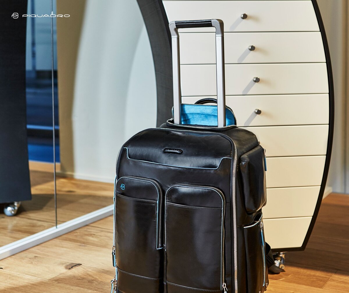 Не так давно Итальянская компания Piquadro выпустила серию универсальных дорожных чемоданов, основной особенностью которых является трансформация в рюкзак. Такой формат чемоданов оказался очень удобным и нашел своего потребителя. В данном обзоре мы рассмотрим несколько самых популярных моделей "рюкзаков на колесиках". Кожаный дорожный чемодан-рюкзак с выдвижной ручкой. С первого взгляда это традиционный кожаный дорожный чемодан. Он имеет одно отделение, множество карманов на молнии, специальный чехол для планшета и ноутбука, а также отсеки для телефона и письменных принадлежностей. Отличный и стильный вариант для деловых командировок и бизнес-встреч.