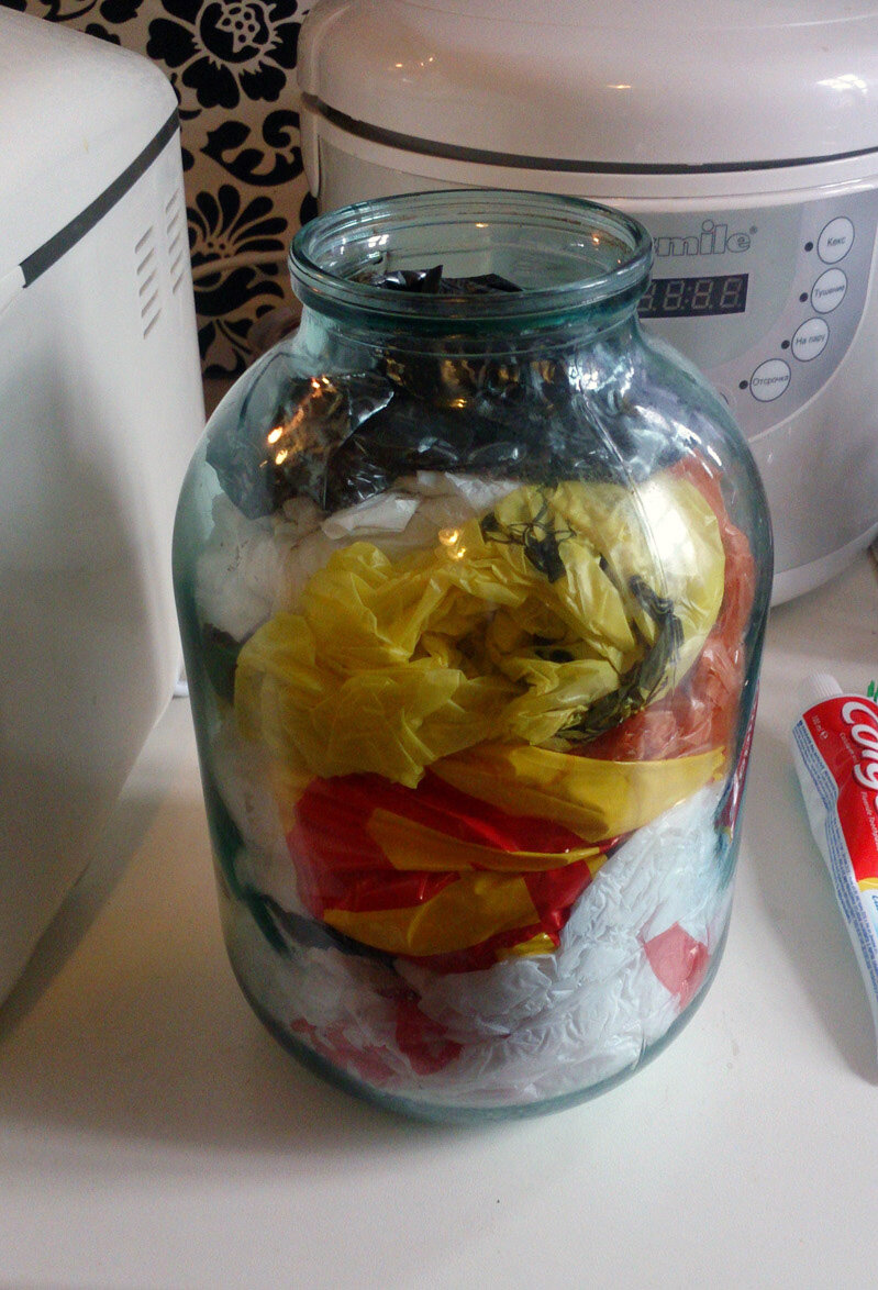Представляю четыре лайфхака для дома. Расскажу, как хранить куриные яйца, как законсервировать целлофановые пакеты, как без проблем мыть посуду и как увеличить мощность пылесоса с помощью ведра воды. Консервирую пакеты в банки После того, как компот выпит, а огурцы съедены, пустые банки занимают в шкафу место. Чтобы просто так не стояли, я забиваю их пакетами. Пакеты складываю, хорошенько прижимаю — и кладу в банку до востребования. Получаются вот такие консервы. Вот как смотрятся красиво на полках: Храню яйца дома прямо в коробке Отрываю верхнюю крышку в коробке с яйцами и ставлю коробку в дверь холодильника. Это удобно не надо каждое яйцо перекладывать в дверь. А если яйцо расколется, то не заляпает холодильник. Увеличил мощность пылесоса с помощью воды Мой пылесос стал плохо всасывать пыль. Простое опорожнение мешка для сбора пыли не помогало. И я решил его помыть в мыльной воде. Сначала вытряхнул пыль. Потом набрал теплой воды с порошком в ведро и прополоскал. Пару раз сменил вод