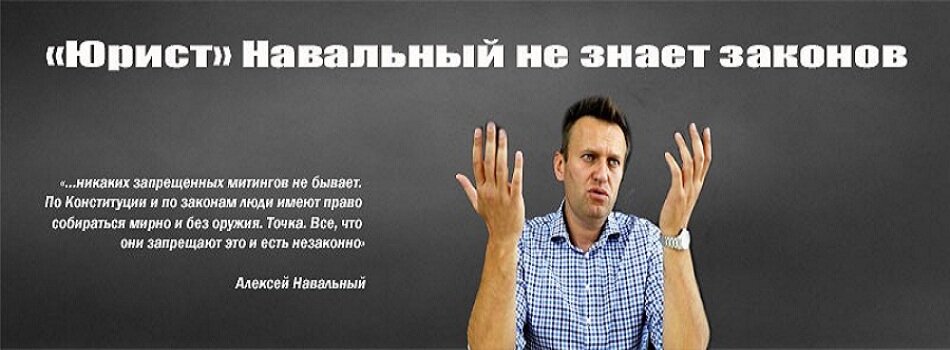 В интервью журналистам Алексей Навальный заявил: «…никаких запрещенных митингов не бывает. По Конституции и по законам люди имеют право собираться мирно и без оружия. Точка. Все что они запрещают это и есть незаконно» Юрист» Навальный либо не знает законов, либо намеренно обманывает. Комментарий юристов к ст. 31 Конституции Российской Федерации: Конституция РФ закрепляет право граждан РФ на проведение публичных мероприятий. Содержание данной конституционной статьи соответствует положениям международных договоров. Так, в ч. 1 ст. 20 Всеобщей декларации прав человека установлено, что «каждый человек имеет право на свободу мирных собраний и ассоциаций». В статье 21 Международного пакта о гражданских и политических правах записано следующее: «Признается право на мирные собрания. Пользование этим правом не подлежит никаким ограничениям, кроме тех, которые налагаются в соответствии с законом и которые необходимы в демократическом обществе в интересах общественной безопасности, общественног