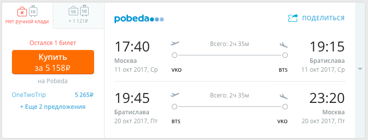 Авиабилеты из Москвы в Братиславу и обратно всего за 5189 рублей