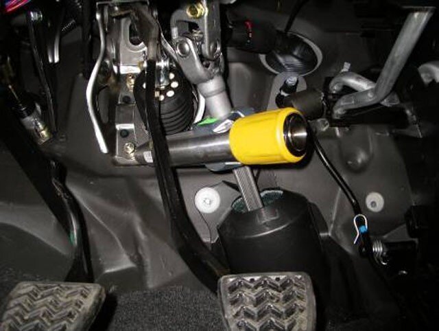 Покупка машины ставит перед автомобилистом кучу новых вопросов, один из них, каким образом можно обезопасить авто от угона. К великому сожалению, не каждый владелец транспортного средства имеет гараж или ставит свою машину на платную автомобильную стоянку. «Тачка» вынуждена ночь проводить во дворе около дома, а риск её хищения чрезвычайно высок. Имеется масса противоугонных средств для защиты ТС. Эта статья расскажет о самых эффективных механических противоугонных устройствах. Блокиратор рулевого колеса Это устройство используется автомобилистами очень часто. Даже если у угонщика есть «родной» ключ зажигания, рулем у него управлять не получится, поскольку тот будет заперт. Данная охранная система удерживает рулевой вал металлическим стержнем. При установке этого устройства крепежные элементы срываются, и такой замок невозможно удалить обыкновенным слесарным инструментом. Обнаружив в машине рулевой блокиратор, у злоумышленника снять его быстро не получится. Ему придется постараться от
