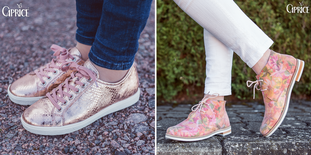 Розовый. Сочный, бесконечно женственный розовый цвет прекрасен сам по себе! В модных показах коллекций «Весна-лето 2017» этот цвет присутствовал во всех возможных вариациях – от сентиментального пудрового до розовой фуксии. Если раньше розовый считался цветом для девочек, то теперь его выбирают все, независимо от возраста и стиля. Он освежает, привлекает внимание и прекрасно сочетается с другими модными цветами, например, сочным зеленым и нежным голубым. Новая энергия розового захлестнула и обувной рынок. В этом цвете представлено всё, включая летние ботинки из тонкой кожи и обувь в спортивном стиле: Классическая комбинация нежно-розового и белого позволяет создавать элегантные и очень женственные образы: В розовой гамме выполнены различные принты – цветочные, анималистические, геометрические. Сочетание мягкого розового оттенка с модным металлическим блеском получается необычайно эффектным. Такие туфли подойдут для особенных моментов – изысканного прие