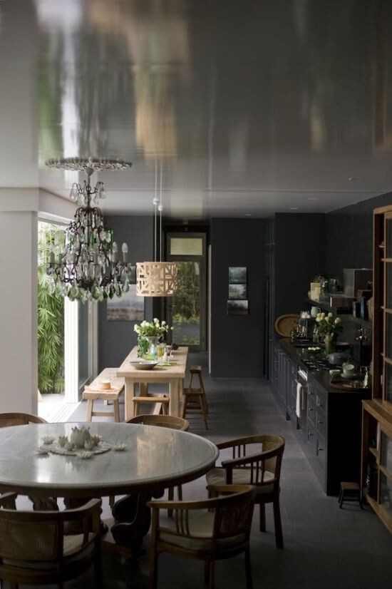 Глянцевый блеск Очень часто ремонт квартир в новостройке начинается с задачи сделать помещение выизуально просторнее, а потолок — выше. Самый распространенный способ сделать расстояние между потолком и полом визуально больше — задействовать глянцевый блеск в отделке этих поверхностей. Если потолок уж очень низок, то желательно, чтобы пол тоже отражал свет. В качестве напольного покрытия в данном случае хорошо подойдет глянцевая керамическая плитка или покрытая лаком древесина. А для потолка можно взять не матовую краску (глянцевую или золотистую) или же сделать натяжной потолок из отражающего материала. Кстати, при помощи последнего можно зрительно увеличить пространство чуть ли не вдвое. Вертикальные линии Всем известно, что обои с вертикальными полосами могут скрасить недостаток в виде низких потолков. Но, откровенно говоря, сегодня такие принты уступают по популярности многим другим. Да и стоит ли себя ограничивать в выборе отделочных материалов одними только обоями? На самом деле