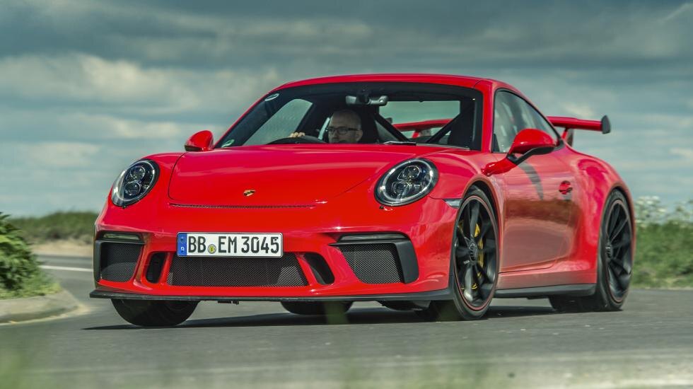 Porsche, который выбил десять из десяти. Кто бы мог подумать? Это автомобиль знаменит тем, что доказал: “механика” не умерла. Когда его выпустили в 2013 году исключительно с PDK, немалая часть клиентов запротестовала – и дожала-таки Porsche. Теперь GT3, который одинаково хорош на треке и на шоссе, доступен и с 6-ступенчатой МКПП от винтажного 911R. Но у красного экземпляра на фото все тот же PDK, который, вероятно, лучше. Хотя я бы предпочел механику. Запутались? Тогда отматываем назад. Перед нами обновленный GT3 – с легкой подтяжкой “по кругу” и некоторыми фишками GT3 RS. Задний спойлер чуть сдвинули назад и вверх, увеличив прижим на 20%, облегчили бамперы, перенастроили амортизаторы и сделали жестче пружины. Вместо “шестерки” 3.8 сзади теперь 4-литровый агрегат с характеристиками “старшего” GT3 RS (500 л.с. и 460 Нм). Хотя в Porsche утверждают, что моторы разные, но это во многом лукавство... Одно точно: крутится движок GT3 на 200 об/мин больше, чем у RS, до 9000 об/мин. Спасибо новы