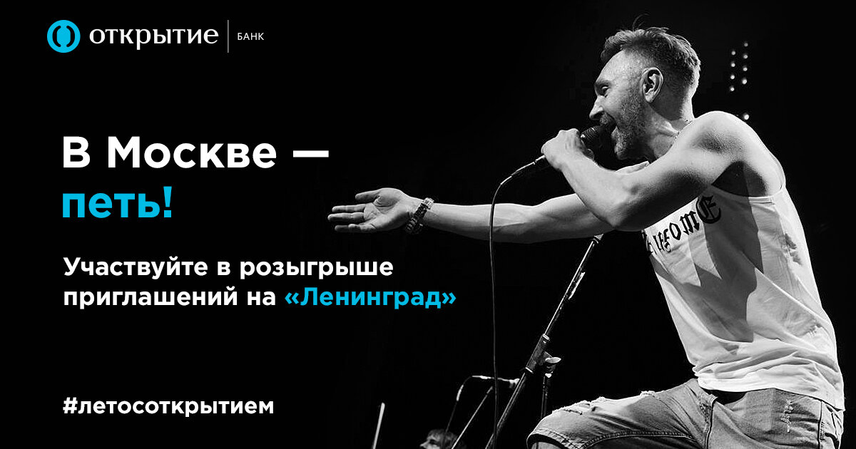 Проводите #летосоткрытием! Разыгрываем пригласительные билеты на московский концерт группировки «Ленинград». Чтобы участвовать в розыгрыше, пройдите увлекательный квест — покажите, как хорошо вы знаете песни любимой группы!