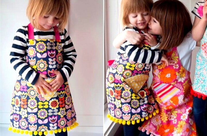 Фартук – необходимая вещь в доме каждой хозяюшки. А если у вас подрастает маленькая хозяюшка, сделайте фартучек и для нее! Вашей маленькой принцессе будет приятно иметь такой же передник, какой носит мама, и она с большим энтузиазмом будет помогать вам по дому. Сшейте парные фартуки «дочка-мама» и приступайте к приготовлению домашних кулинарных шедевров! Как сшить фартук? Для начала нужно определиться с тканью. Выбирайте что-то поплотнее. Идеальной основой для передника является лен, но выбирайте на глаз и на ощупь. Затем приступаем к выкройке. Выкройка детского фартука делается на ткани размером примерно 40*50 (ориентируйтесь на рост ребенка). Для начала нужно снять мерки. Делайте это согласно схеме ниже. Стандартная выкройка фартука для ребенка 6-12 лет выглядит следующим образом. Если ваш ребенок достаточно высокий, вам подойдут другие размеры. Впрочем, этот фартук подойдет и взрослым. Ну а стандартная выкройка фартука для взрослых выглядит так. Однако все эти размеры условные. Они