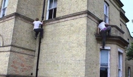 Посмотрите как два парня лезут на дом. Без страховки, на время. Это надо видеть!