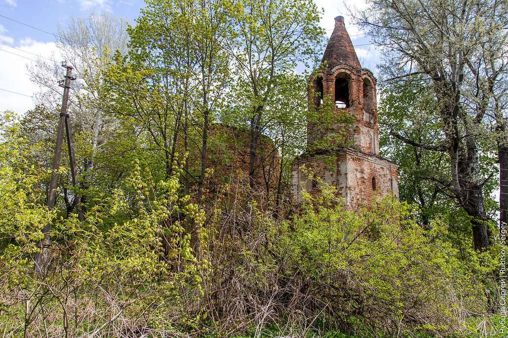 Село Бушово находится в 12 км от Тулы в сторону Венева, раньше это был Ленинский район области, а сейчас же территория Большой Тулы. Интересно, что информация в интернете разнится, то село пишут через "О", то оно вдруг становится Бушевым, я остановлюсь на первом варианте. В данном месте ко всему прочему родился Священномученик иерей Иоанн. В селе сохранились остатки старинного храма Казанской иконы Божией Матери: Каменный храм построили здесь в середине 18-го века вместо существовавшего ранее деревянного, через сто лет во время ремонта к нему были пристроен еще один придел. Сейчас основной объем храма обрушился, оставив лишь одну стену: Удивительно, но даже на таком не прикрытом ничем клочке сохранилась церковная роспись: В трапезной обвалилась крыша, и здесь уже во всю главенствуют деревья: На окнах, к моему удивлению, сохранились решетки: Тяжело представить, что весь храм был выполнен с декором в стиле барокко, только по колокольне угадываются первоначальные черты: Поблизости от хра