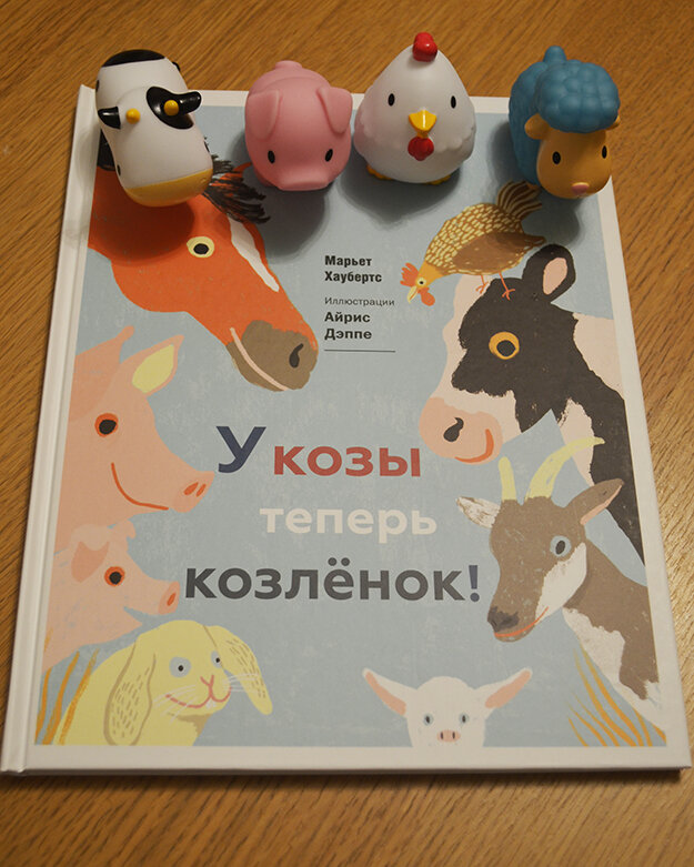 Очень сложно разобраться в огромном ассортименте детских книг. Хочется, чтобы книга доставляла удовольствие и маме, и ребенку. Чтобы она была красивая, добрая, полезная и безопасная. Мне очень понравилась книга Марьет Хауберт «У козы теперь козленок!» и она соответствует всем мои пожеланиям. Автор книги живет и работает в Нидерландах. Марьет Хауберт преподавала танцы в начальной школе. А после того, как в 1998 году она выиграла конкурс авторов текстов песен, начала писать песни, стихи и рассказы для передачи «Улица Сезам». Иллюстрации для книги создавала Айрис Дэппе. У нее степень бакалавра в области иллюстрации, полученная в Высшей школе искусств города Утрехта. С 2011 году она занимается иллюстрацией детских книжек. Книга «У козы теперь козленок!» предназначена для самых маленьких. На каждом развороте – небольшое четверостишье и большая иллюстрация. Стихотворение рассказывает о ферме и ее обитателях: коровке, лошадке, курочке с цыплятами, поросятах, крольчихе и, конечно, козе, у