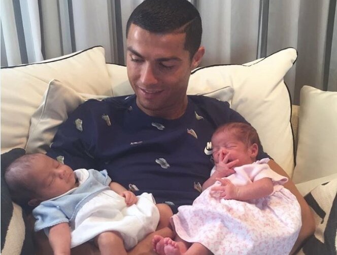 В начале июня нападающий мадридского «Реала» и сборной Португалии Криштиану Роналду снова стал отцом. Как сообщают СМИ суррогатная мать выносила и родила спортсмену двоих близнецов — мальчика Матеу и девочку Еву. На днях знаменитый футболист опубликовал в Instagram фотографию с новорождёнными малышами. Милый фотоснимок за 15 часов набрал свыше 6 миллионов лайков в микроблоге футболиста. Сам Криштиану на фото выглядит очень счастливым и немного растерянным. Звезда футбола не раз заявлял журналистам, что всегда мечтает о большой семье. У Криштиану уже подрастает сын, также рождённый от суррогатной матери - Криштиану Роналду-младший. Мальчику уже 6 лет, и он, как и его отец, играет в футбол.