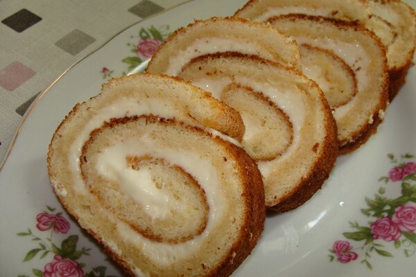 Ингредиенты: сахар - 90 г мука - 90 г яйца - 3 шт. пудра сахарная сметана Приготовление: В чаше миксера взбить при высокой скорости сахар с яйцами около 5 минут в плотную белую массу, добавить муку, аккуратно перемешать, вылить массу на выстланный бумагой противень. Выпекать рулет по ГОСТу около 15 минут в духовке с температурой 190 градусов. Готовый бисквит выложить на полотенце, удалить бумагу, промазать сметанным кремом или вареньем, свернуть в трубочку, дать немного постоять для пропитки.