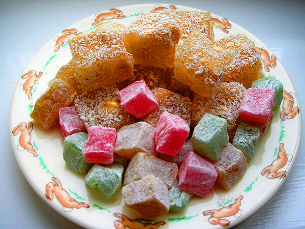 Рахат-лукум — восточное лакомство, в переводе с турецкого — «удобные кусочки», внешне похож на мармелад, но отличается вкусовыми свойствами и тягучестью. В этой статье я расскажу из чего делают рахат-лукум, его состав, о его вреде и пользе для нашего организма.