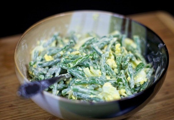 🔸 На 100 гр - 70.69 ккал 🔸 белки - 5.65🔸 жиры - 3.77🔸 углеводы - 3.17 🔸 🔹Ингредиенты: 400 г зеленой фасоли 4 яйца 1-2 зубчика чеснока, очищенных Натуральный йогурт по вкусу (около 70 г) 🔹Приготовление: 1. Отварите яйца вкрутую и залейте холодной водой. 2. Очистите и нарежьте зеленую фасоль. Вскипятите воду, посолите по вкусу, добавьте фасоль и отварите до желаемой мягкости (5-10 минут). Ополосните готовую фасоль в дуршлаге под струей холодной воды. 3. Переложите фасоль в салатник, выдавите сверху чеснок. 4. Очистите яйца и нарежьте их в салатник с фасолью. 5. Подсолите по вкусу, заправьте йогуртом и перемешайте. Приятного аппетита!