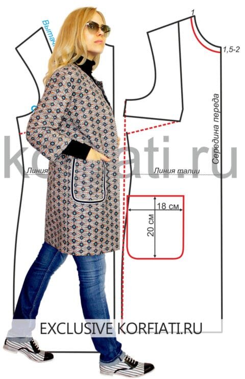 Это яркое легкое пальто без воротника – вещь в стиле кэжуал, которая обязательно должна быть в вашем гардеробе. Предлагаем вам сшить эту модель самостоятельно, ведь несмотря на то, что пальто «посажено» изнутри на подкладку, сложность пошива – невысокая, и даже те, у кого мало опыта – справятся на отлично!