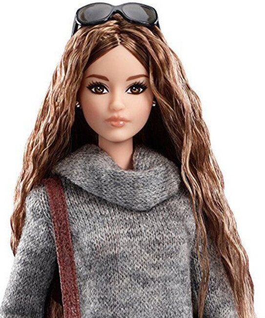 Встречайте интересные новинки в коллекции Barbie The Look: Барби Sweater Dress (платье-свитер). Это невероятно красивая кукла в сером вязаном платье-свитере, вязаных чулках, сапогах. Тёмные очки и стильная сумочка идут в комплекте.
