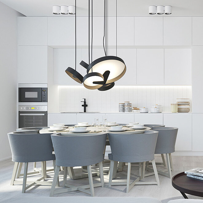 Белый цвет в последнее время очень популярен в дизайне интерьера, он часто используется для создания элегантности и утонченности. В этой подборке 10 современных дизайнов кухонь используют комбинацию материалов и текстур, которые поражают каждого гостя. Яркие акценты на стенах, интересные детали или кухонный фартук помогают обеспечить необычный контрасты, вы увидите это сразу в нескольких из наших проектов. Другие сохраняют чистоту белого цвета в соединении с деревянным полом. Но главное преимущество белого цвета – это его возможность сделать вашу комнату более крупной, а в случае с кухней - отразить свет там, где нет доступа к естественному освещению. Наша первая белая кухня очень проста. Вся комната наполнена панельными дверями и выдвижными ящиками. Встроенный холодильник прекрасно вписывается в интерьер. А открытые стеклянные полки на задней стенке используются для хранения и декора. А эта кухня отличается ровными линиями, итальянским мрамором и темным полом из европейского дуб