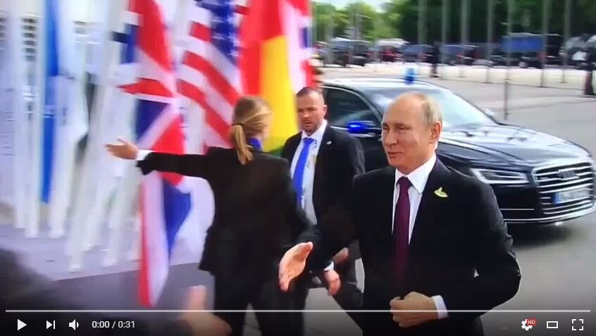 В Сети опубликовали видео с кадрами комичной ситуации, где встречающая гостей саммита G20 в Германии девушка «проморгала» президента РФ Владимира Путина. Об этом сообщает издание ФАН.