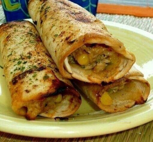 3. Завернуть начинку в лаваш, скрутить рулетом и смазать яйцом и специями.