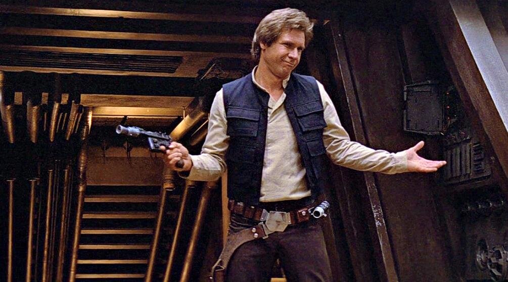 • Изначально Хан Соло создавался Лукасом как здоровенный зеленый инопланетянин без носа. Потом персонаж трансформировался в темнокожего мужчину. Но в конце концов Лукас пришел к образу, который мы видим в серии фильмов. Фрэнсис Форд Коппола, хороший друг Лукаса, стал одним из источников вдохновения при создании финального образа Хана Соло.