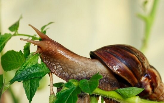 Ахатина (лат. Achatina) - самый крупный наземный брюхоногий моллюск, который относится к подклассу лёгочных улиток. Родина ахатины - восточная Африка: Танзания и Кения. Были завезены человеком в страны Южной и Юго-восточной Азии на острова Тихого океана, Карибского моря. Ахатины были также специально завезены в Европу для разведения и употребления в пищу из-за их высокой кулинарной ценности. Строение Тело ахатины в длину достигает 30 см, а ее раковина - до 25 см в диаметре. У этой улитки коническая раковина с 7 до 9 витками, которая чаще всего закручена против часовой стрелки, но может быть закручена и в обратном направлении. В зависимости от питания и других условий жизни раковины ахатины имеют полосы разных оттенков на коричневом фоне. С возрастом раковина приобретает зеленоватый цвет. Очень прочная и массивная раковина защищает мягкое тело улитки от механических повреждений и врагов, а также предохраняет тело от высыхания. Обитая во влажных условиях, ахатины имеет более тонкую и про