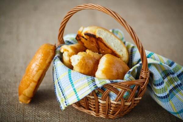 Ингредиенты: для теста: мука — 1.5 — 2 стакана теплая вода — 1 стакан свежие дрожжи — 20 г соль — щепотка сахар — 1 ст.л. растительное масло — 0.5 стакана для начинки: рис — 1/2 стакана сушеные грибы — большая горсть репчатый лук — 1 шт. соль — по вкусу молотый перец — по вкусу растительное масло — для обжаривания Приготовление: Приготовить тесто. Нагреть воду, добавить раскрошенные дрожжи и сахар. Перемешать. Добавить соль, просеянную муку и растительное масло. Замесить мягкое тесто, накрыть полотенцем и поставить в тепло на час. Рис промыть, отварить до готовности в подсоленной воде. Грибы промыть, залить теплой водой и дать им набухнуть. Слить жидкость и мелко нарезать. Лук почистить и измельчить. Разогреть сковороду с растительным маслом, обжарить грибы вместе с луком, приправить и перемешать с рисом. Тесто разделить на небольшие шарики. Раскатать их на присыпанной мукой поверхности, положить в центр начинку и защипать края. Противень застелить пергаментной бумагой, выложить с