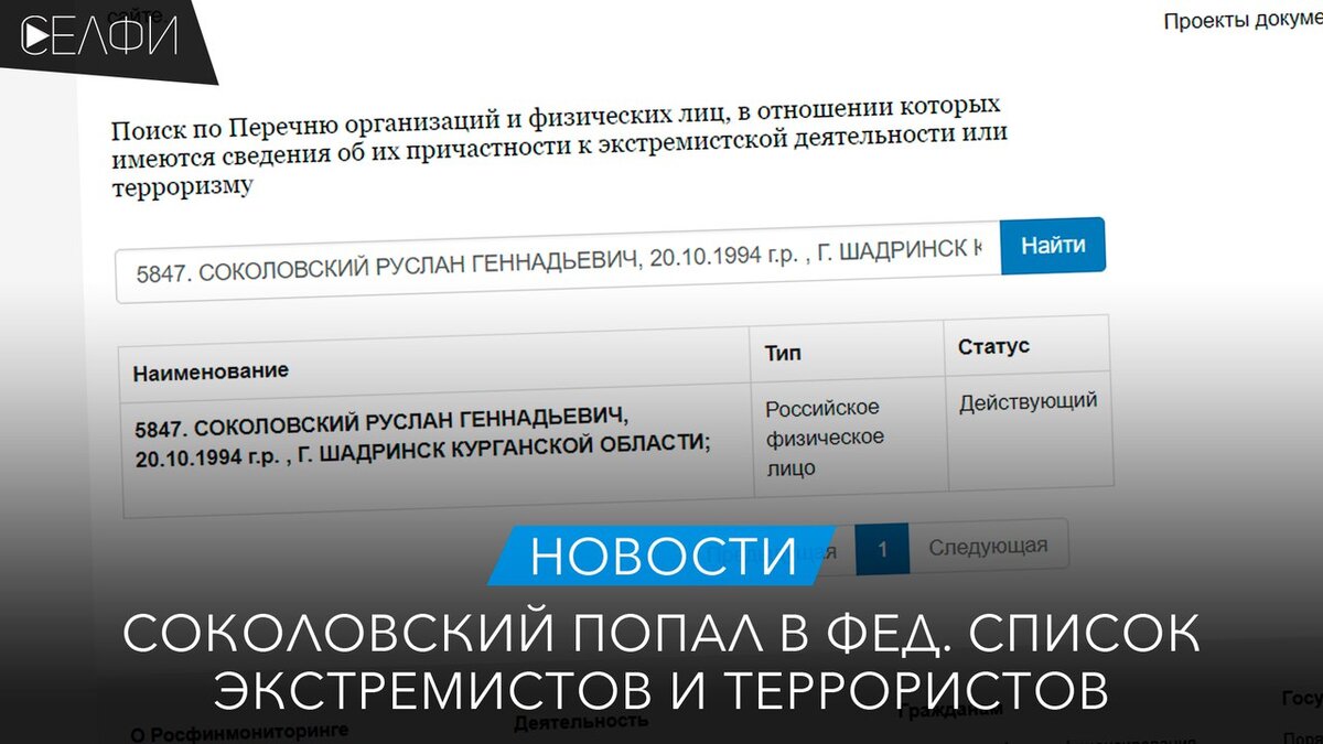 Федеральная служба по финансовому мониторингу внесла в список экстремистов уральского блогера Руслана Соколовского, получившего условный срок по делу о «ловле покемонов» в храме. Как минимум, это значит, что всего его счета были заблокированы. На своей странице блогер пожаловался, что WebMoney, QIWI и PayPal лишили его доступа к личным кошелькам с доходами. Только сегодня прояснилось, что это государственный орган, внеся Руслана в злополучный перечень террористов, повлиял на работу его виртуальных кошельков. Поиск по экстремистам и террористам доступен по ссылке: fedsfm.ru/documents/terr-list. Можете ввести в поиск фамилию Руслана и убедиться в происходящем.
