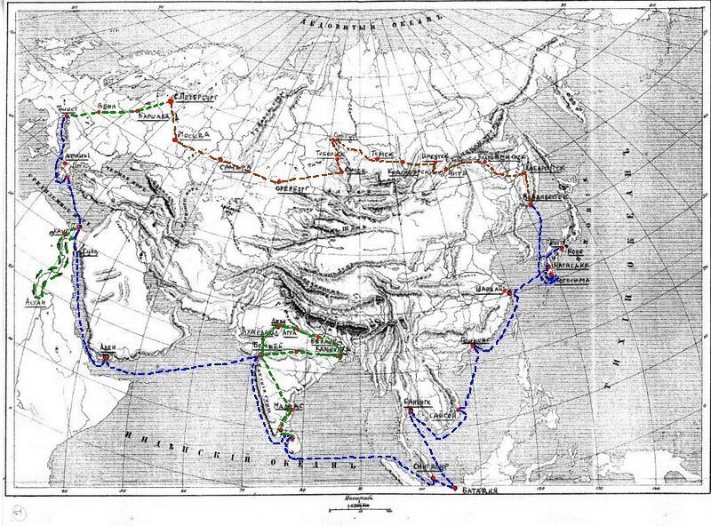 Общая длина маршрута, пройденного наследником престола Российской империи составила более 51000 км, в том числе 15000 км по железным дорогам и 22000 км по морю. Во время посещения Японии на Николая было совершено неудачное покушение.