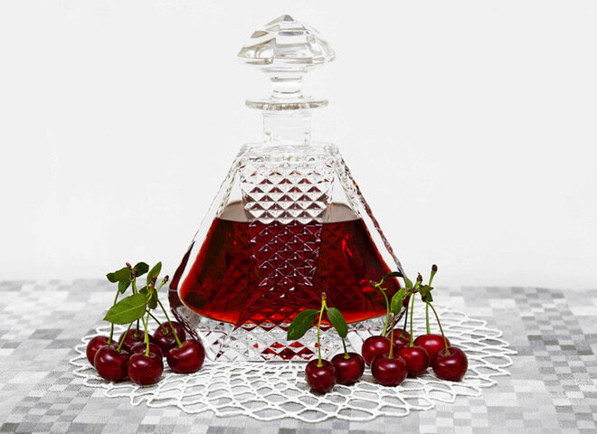 Рецепт домашнего вина из вишни не слишком сложный. Тут важна выдержка напитка и… вашего характера, чтобы с одной стороны, не забыть о брожении вишни где-то в кладовке, а с другой – не выпить все раньше времени в процессе, так сказать, дегустации. А в результате всех несложный манипуляций вы получите легкое домашнее вино из вишни крепостью 11-13%. Ингредиенты: 3 кг вишни, 1,5 кг сахара, 4 л воды. Приготовление: Для вишневого вина лучше выбирать спелую, темную, насыщенную кисло-сладкую вишню. Немаловажное условие – собранную вдали от загрязненных мест, потому что для вина вишня не моется. Для начала брожения необходимы натуральные винные дрожжи, которые как раз и находятся на поверхности ягод, поэтому их не следует смывать. По той же причине процесс брожения пойдет гораздо хуже, если использовать вишню, собранную после дождя, а не в сухую погоду. Ягоды тщательно перебрать, удалив хвостики и мусор, а также подпорченные, подгнившие и червивые вишенки. Очистить вишню от косточек. Насыпа
