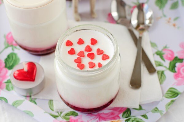 Ингредиенты: для малинового пюре: ягоды малины — 150 г сахар — 3 ст.л. молотый кардамон — щепотка для сливочного желе: желатин — 10 г холодная кипяченая вода — для замачивания желатина молоко — 250 г сливки — 250 г сахар — 50 г ванильный экстракт — 1 ч.л. сахарные сердечки — для украшения Приготовление: Малину помыть и размять вилкой. Добавить сахар и кардамон. Проварить на медленном огне, чтобы сахар растворился. Дать немного остыть. Влить около 2 чайных ложек ягодной смеси в каждый стакан. Поставить в холодильник, пока готовится сливочное желе. Смешать молоко, сахар и сливки в кастрюле, довести до кипения и сразу же снять с огня. Дать остыть до 65 ° С . Добавить замоченный в холодной воде желатин и хорошо перемешать. Добавить ванильный экстракт. Наполнить сливочной смесью стаканы с малиновым соусом и поставить в холодильник на несколько часов. Перед подачей украсить маленькими сахарными сердечками. Приятного аппетита! 😉 Понравился рецепт? Поставьте лайк 💙 😉 Наш сайт - https:
