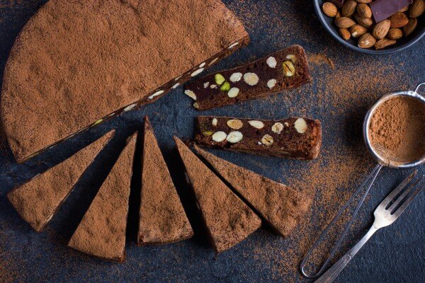 Этот шоколадный десерт с печеньем, безе, орехами и вишней получается безумно вкусным! А то, что он не требует выпечки, делает его еще лучше. Ингредиенты: сахарное печенье — 200 г орехи пекан, крупно нарезанные — 110 г очищенные несоленые фисташки — 110 г засахаренные вишни — 10 шт. безе — 2 шт. сливочное масло — 150 г мед или сироп — 1 ст.л. шоколад с 70% содержанием какао — 200 г Приготовление: Разломать печенье на мелкие кусочки и сложить в большую миску. Добавить орехи пекан, фисташки, вишни и раскрошенное безе. Сложить остальные ингредиенты в отдельную жаропрочную миску и растопить на водяной бане или в микроволновой печи, хорошо перемешать.3. Смешать обе смеси и отправить в застеленную пищевой пленкой форму. Разровнять ложкой. Поставить в холодильник до полного застывания. Переложить на тарелку и снять пленку. По желанию посыпать просеянным какао-порошком. Разрезать на порционные кусочки и подать к столу. Приятного аппетита! 😉 Понравился рецепт? Поставьте лайк 💙 😉 Наш сайт