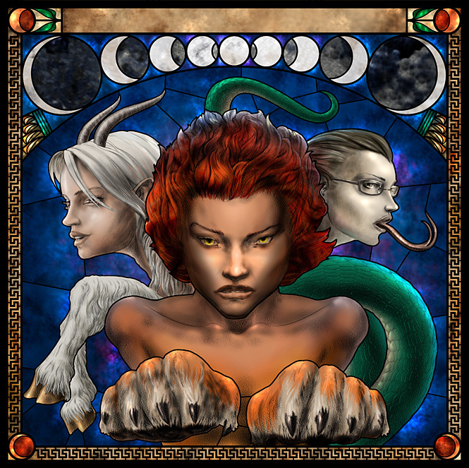 А все потому, что луна — это женщина и любая женщина тоже как бы луна. Лунной богине поклонялись в виде Триады — девственницы, зрелой женщины-нимфы и старухи*. Изображали Лунную богиню в виде Химеры — существа из трех частей. Девушку обозначала львиная голова, нимфу — тело козы, а старуху — хвост змеи. Лев девушки символизировал гордость и жестокость. Коза женщины — нежность и страстность. Змея старухи — мудрость и коварство.