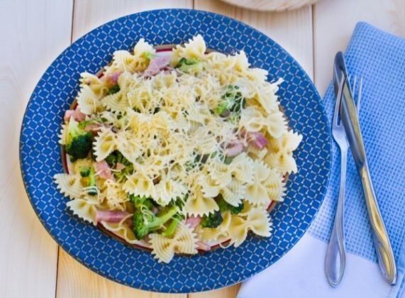 Ингредиенты: паста (фарфалле или пенне) — 300 г брокколи, разобранная на маленькие соцветия — 1 кочан масло — 1 ст.л. лук, нарезанный — 1 шт. чеснок, нарезанный — 2 зубчика ветчина, нарезанная кубиками — 250 г жирные сливки — 300 г английская горчица — 1 ст.л. сыр чеддер — 140 г соль, перец — по вкусу Приготовление: Взять большую кастрюлю, налить подсоленную воду и довести до кипения. Добавить макароны и варить по инструкции на упаковке, добавив брокколи за 4 минуты для готовности. Слить и отложить в сторону. Приготовить соус. Нагреть масло в большой сковороде и жарить лук в течение 5 минут, затем добавить чеснок и готовить еще минуту. Добавить ветчину, сливки и горчицу, довести до кипения. Приправить по вкусу. Добавить макароны и брокколи, затем добавить сыр и перемешать. Подавать, по желанию посыпав дополнительной порцией сыра. Приятного аппетита! 😉 Понравился рецепт? Поставьте лайк 💙 😉 Наш сайт - https://recase.org 😉 Мы вконтакте - https://vk.com/recase_org
